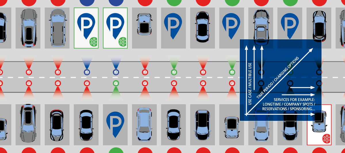 Each spot is reporting its own status at any time and can be customized in real time. A decentralized system further eliminates the need for barriers or ticket machine.